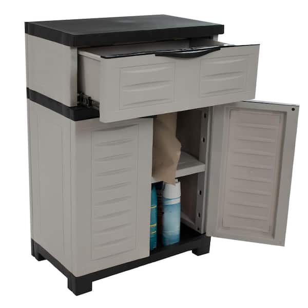 Heavy-Duty Storage 23.25 in. W x 25.5 in. H x 13.75 in. D Adjustable 1-Shelf Polypropylene Freestanding Cabinet in Gray