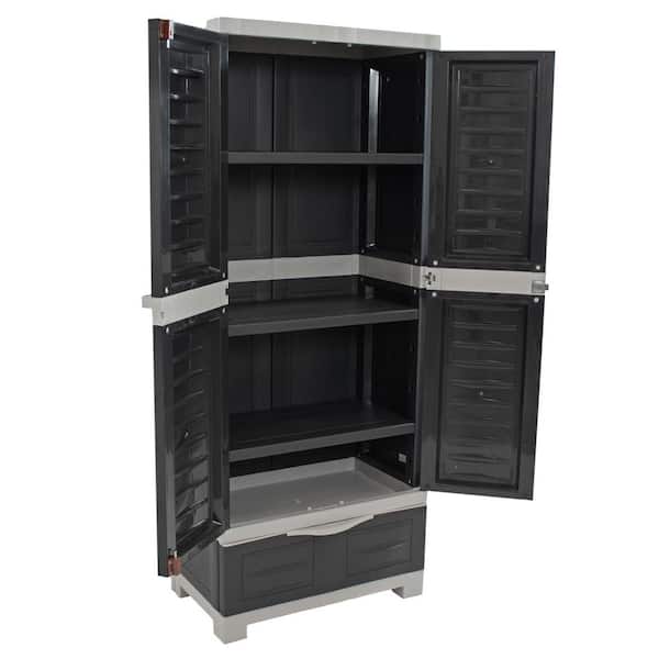 Lockable Storage 23.25 in. W x 57.5 in. H x 13.75 in. D Adjustable 3-Shelf Polypropylene Freestanding Cabinet in Gray