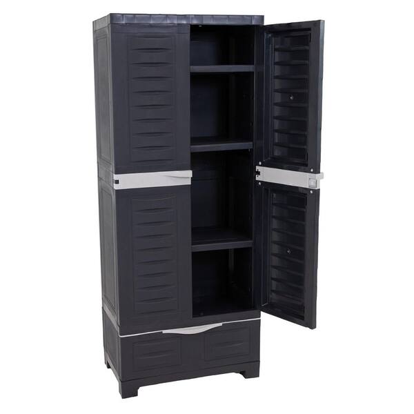 Lockable Storage 23.25 in. W x 57.5 in. H x 13.75 in. D Freestanding Cabinet with 3 Adjustable Shelves in Charcoal