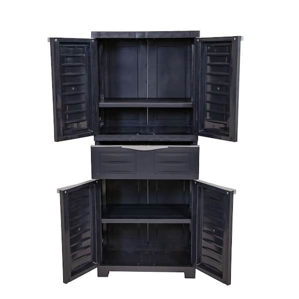 Plastic Storage 23.25 in. W x 57 in. H x 13.75 in. D Freestanding Cabinet with 2 Adjustable Shelves & Drawer in Charcoal