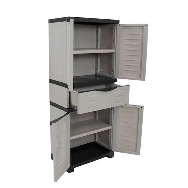 Storage with Drawer 23.25 in. W x 57 in. H x 13.75 in. D Adjustable 2-Shelf Polypropylene Freestanding Cabinet in Gray