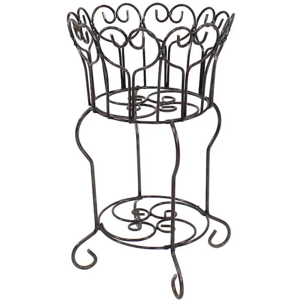 Sunnydaze 21.25 in. Round Steel Heart Indoor Plant Stand with Shelf
