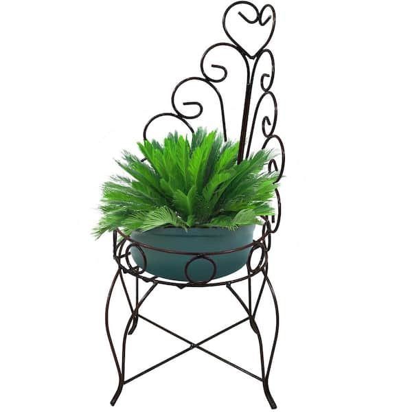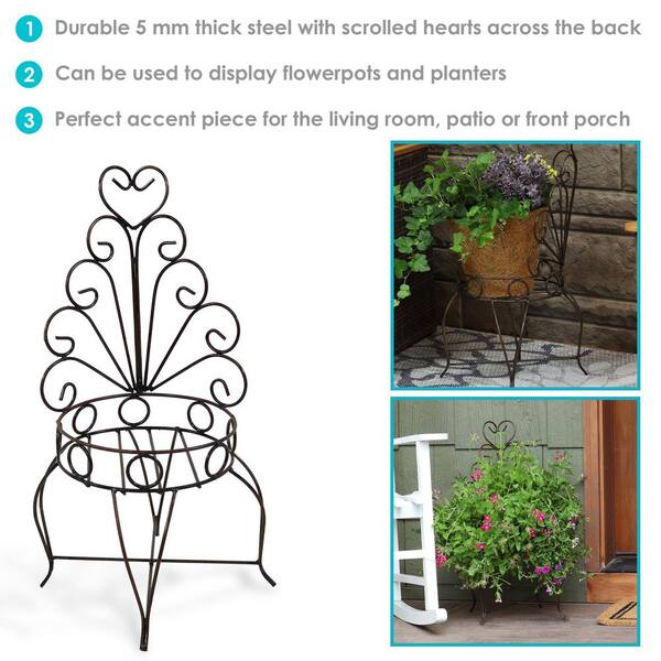 Sunnydaze 25.25 in. H Sweethearts Chair Indoor/Outdoor Steel Plant Stand