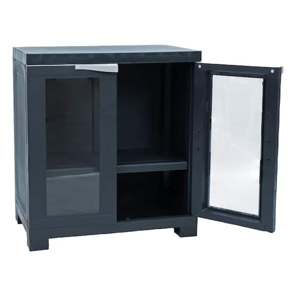 Window-Front 23.25 in. W x 25.5 in. H x 13.75 in. D Storage Freestanding Cabinet with Adjustable Shelf in Charcoal