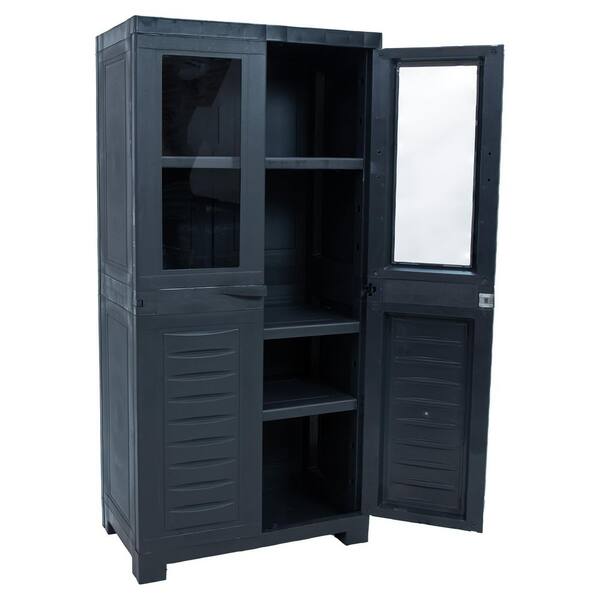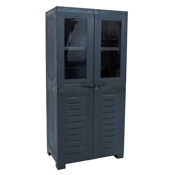 Window-Front 23.5 in. W x 48.75 in. H x 14 in. D Storage Freestanding Cabinet with Adjustable Shelves in Charcoal
