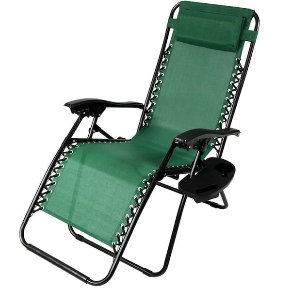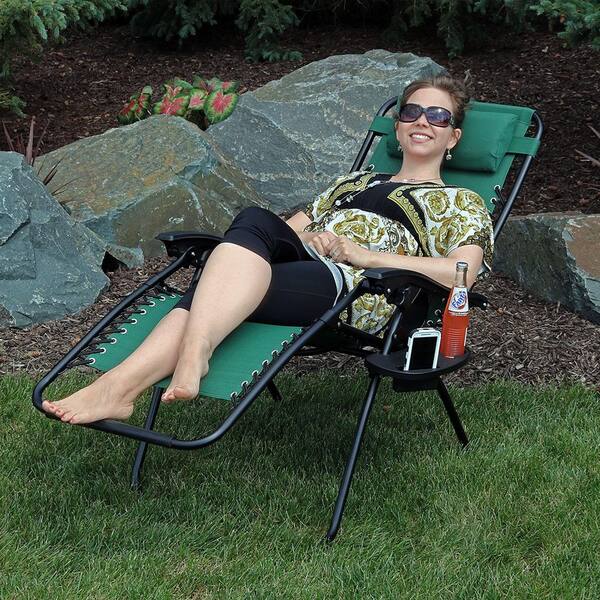 Zero Gravity Forest Green Lawn Chair with Pillow and Cup Holder