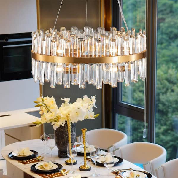 23.6 in. W 12-Light Gold Crystal Chandeliers Modern LED Lighting for Living Room Bedroom Home Decor