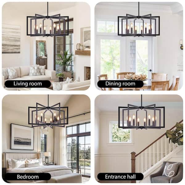 27 in. W 8-Light Black Ceiling Chandelier Modern Pendant Light Fixture, E12, No Bulbs Inlcuded