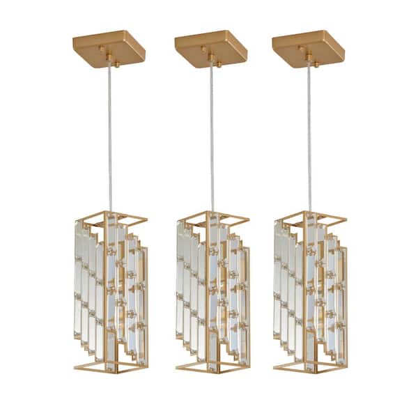 3 Pcs 1-Light Crystal Pendant Adjustable Hanging Ceiling Chandelier, Golden Finish, E26, No Bulbs Included