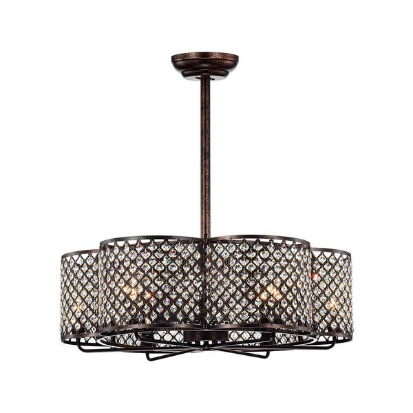 30 in. Indoor Rustic Brown Crystal Fandelier Cage Ceiling Fan with Remote Control, Bulb Not Included