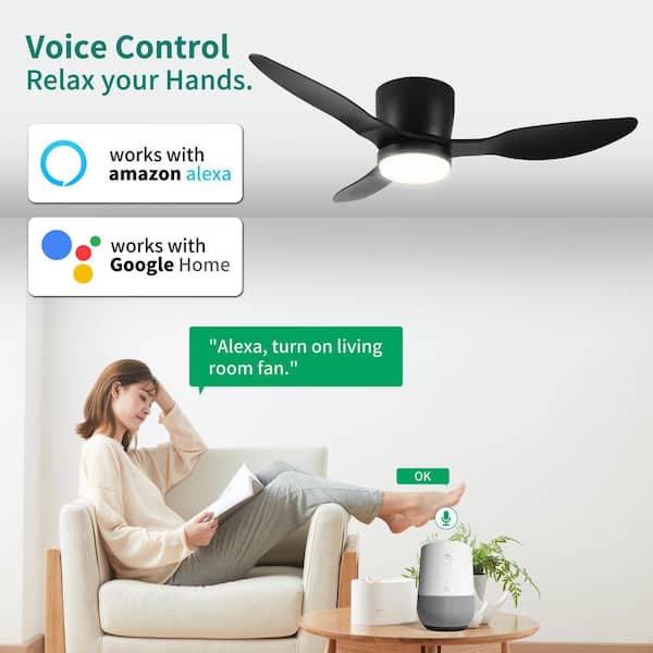 42 in. W Indoor/Outdoor Black Smart Flush Mount Ceiling Fans with Dimmable LED, Remote and ‎App Control