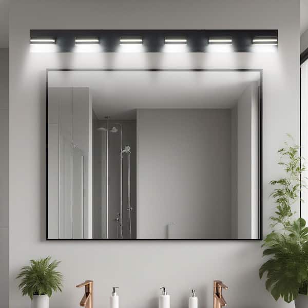 47 in. W 6-Lights LED Vanity Light for Bathroom, Black Wall Sconce Over Vanity Mirror, Cool White 6000K