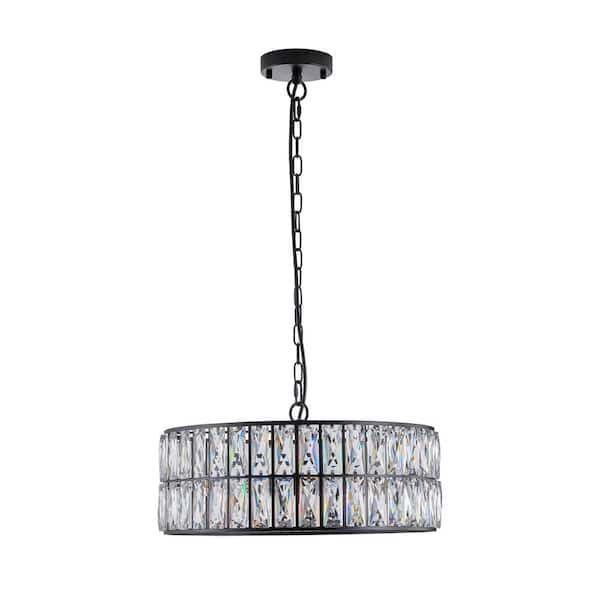 6-Lights Black Crystal Chandelier with Metal Frame & 59 in Chain for Living Room, Dining Room, E12, No Bulbs Included