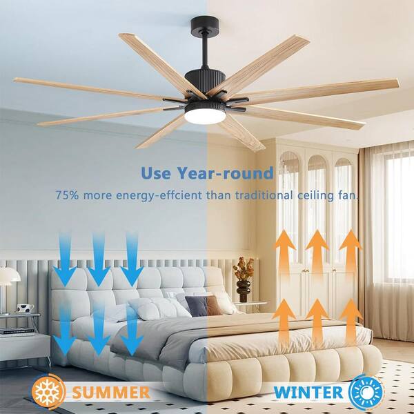 76 in. Smart Indoor/Outdoor Black LED Ceiling Fan with APP, Remote and Wall Control, Reversible DC Motor, Wood