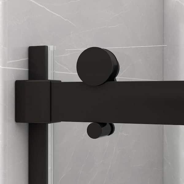 47 2/8 - 48 in. W x 76 in. H Single Sliding Frameless Shower Door in Matte Black Finish with Clear Tempered Glass