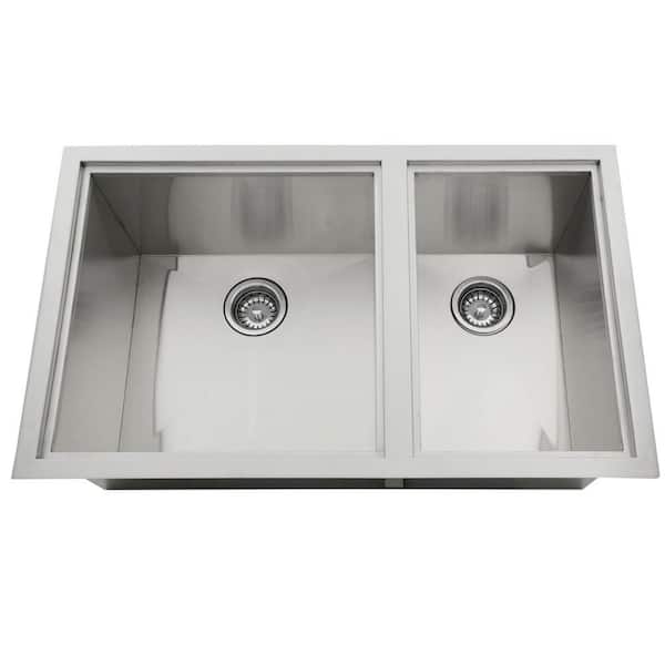 Over/Under 34 in. x 12 in. Height Double Basin Sink with Covers