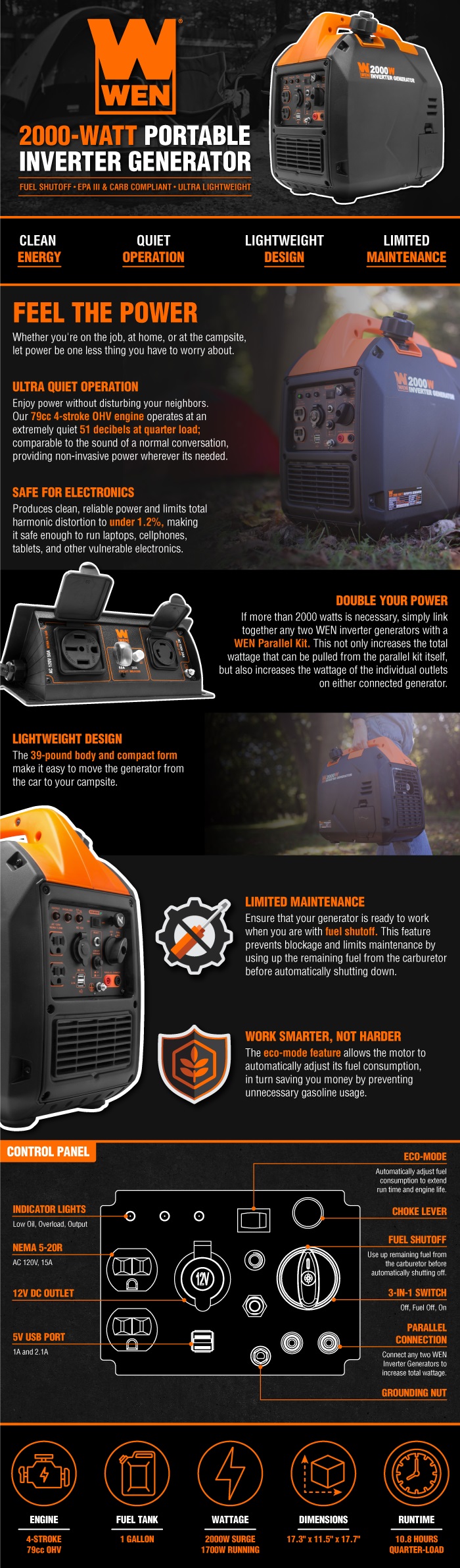 | Name | Super Quiet 2000-Watt Gas-Powered Portable Inverter Generator with Fuel Shut Off CARB Compliant | 2,200/1,800-Watt Gasoline Powered Recoil Start Portable Digital Inverter Generator with Parallel Capability | GP2200i - 2200-Watt Gasoline Powered Recoil Started Residential Portable Inverter Generator | Super Quiet 3800-Watt Gas-Powered RV-Ready Portable Inverter Generator with Fuel Shut-Off and Electric Start |