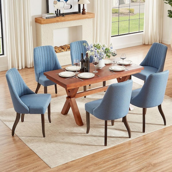Navy Blue Upholstered Parsons Dining Chairs (Set of 2), Fabric Dining Room Chairs with High Back and Solid Wood Legs