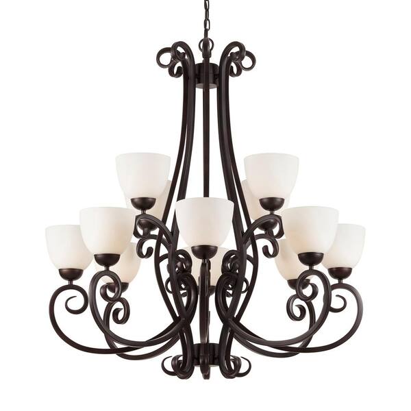 Sutter 12-Light Antique Bronze Chandelier with Satin White Glass