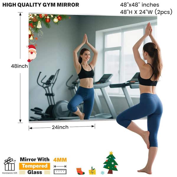 2-Pieces 24 in.W x 48 in.H Rectangle Frameless Wall-Mounted HD Gym Mirror Dance Mirror Vanity Mirror