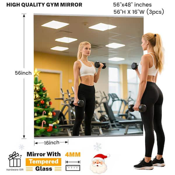 3-Pieces 16 in. W x 56 in. H Modern Rectangle Frameless Wall-Mounted Dance Mirror Garage Gym Mirror