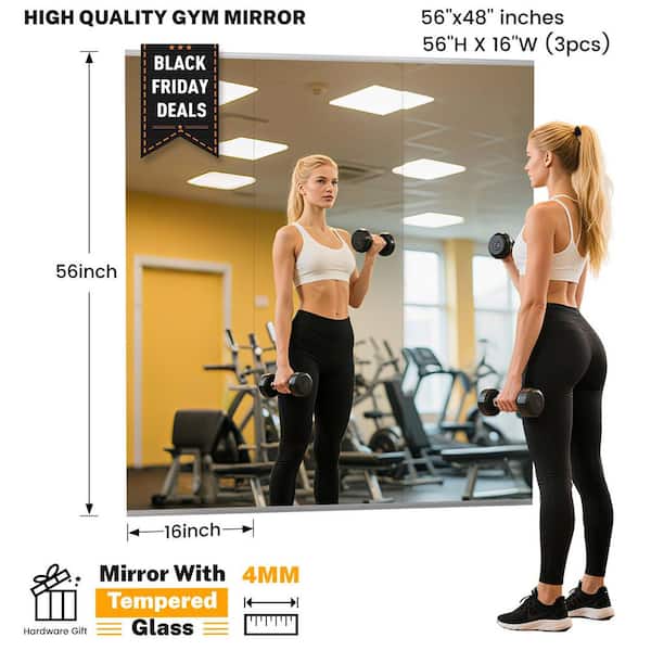 3-Pieces 16 in. W x 56 in. H Modern Rectangle Frameless Wall-Mounted Dance Mirror Garage Gym Mirror