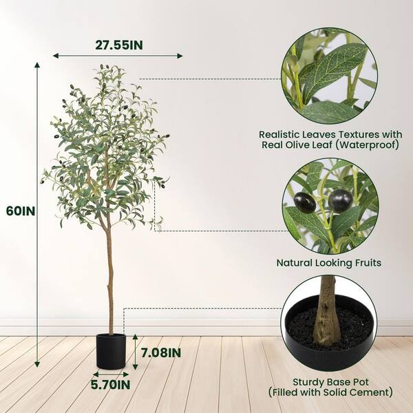 5 ft. Artificial Olive Tree in Pot, Large Faux Olive Silk Tree for Indoor Home Decor and Housewarming Gift