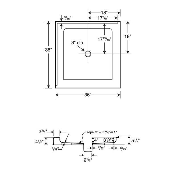 36 in. L x 36 in. W Alcove Shower Pan Base with Center Drain in Tahiti Gray