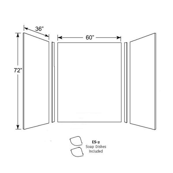 36 in. x 60 in. x 72 in. 3-piece Easy Up Adhesive Alcove Shower Surround in White