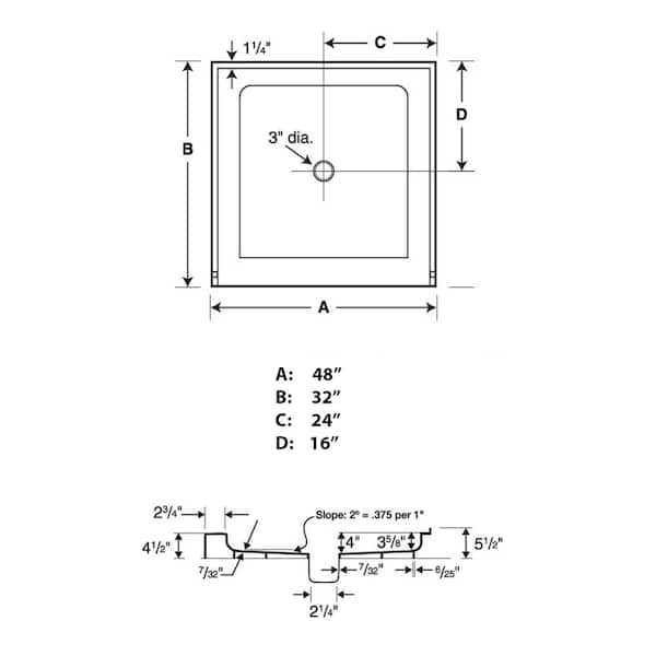 48 in. L x 32 in. W Alcove Shower Pan Base with Center Drain in Arctic Granite