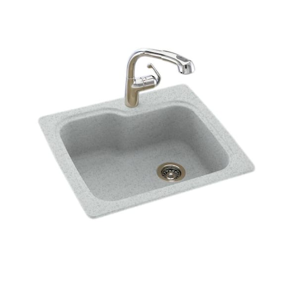 Dual-Mount Solid Surface 25 in. x 22 in. 1-Hole Single Bowl Kitchen Sink in Tahiti Gray
