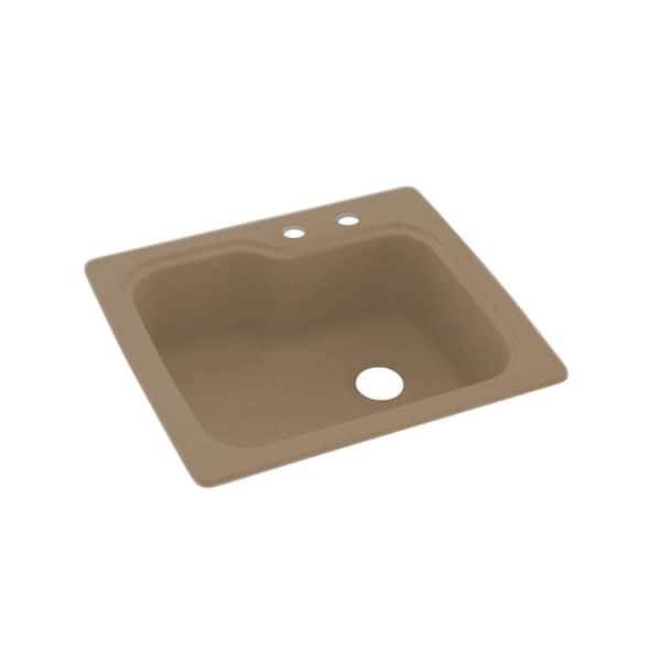 Dual-Mount Solid Surface 25 in. x 22 in. 2-Hole Single Bowl Kitchen Sink in Barley