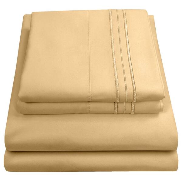 1800 Series 4-Piece Camel Solid Color Microfiber King Sheet Set