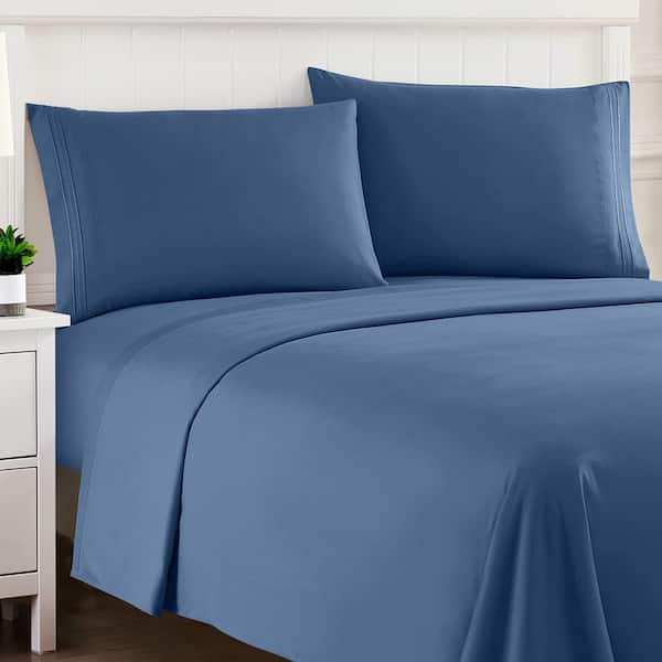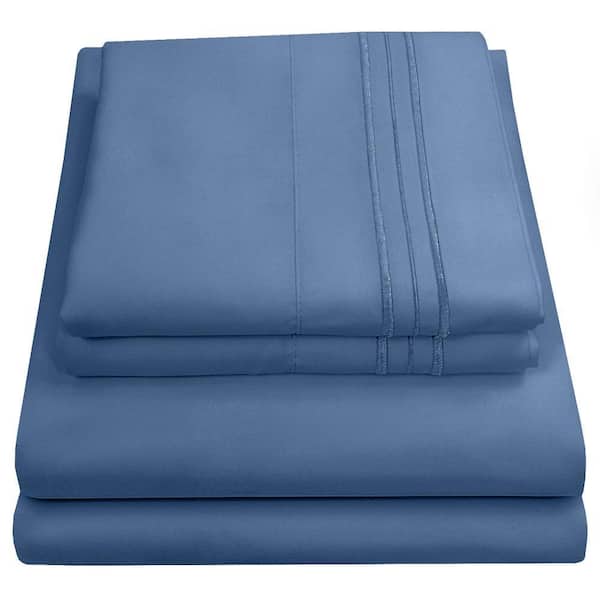 1800 Series 4-Piece Denim Solid Color Microfiber RV Short Queen Sheet Set