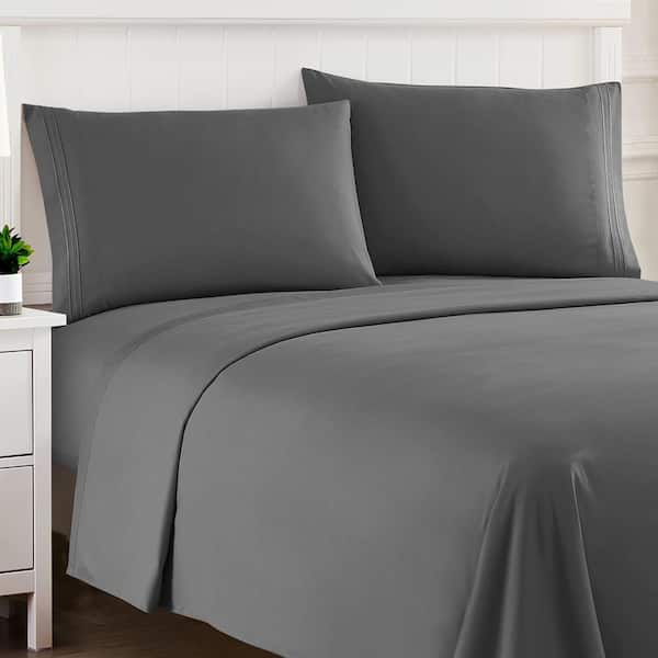 1800 Series 4-Piece Gray Solid Color Microfiber RV Short Queen Sheet Set