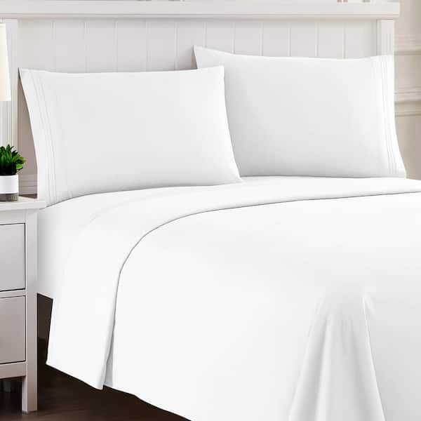 1800 Series 4-Piece White Solid Color Microfiber RV Short Queen Sheet Set