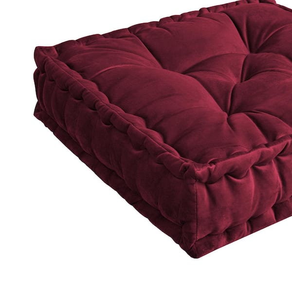 20 in. W x 20 in. L Faux Velvet Tufted Square Floor Pillow Cushion, Burgundy