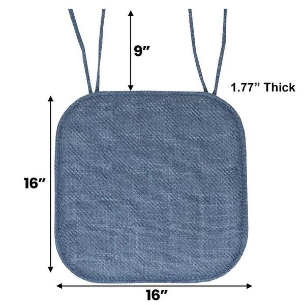Blue, Herringbone Memory Foam Square 16 in. W x 16 in. D, Non-Slip Indoor/Outdoor Chair Seat Cushion with Ties(4-Pack)