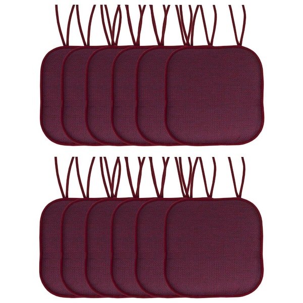 Cameron Square Memory Foam 16 in.x16 in. Non-Slip Back, Chair Cushion with Ties (12-Pack), Wine