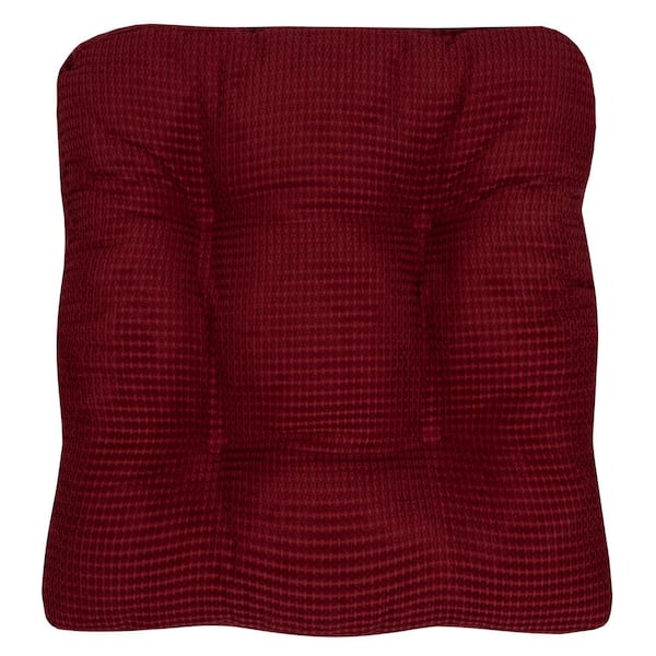 Fluffy Tufted Memory Foam Square 16 in. x 16 in. Non-Slip Indoor/Outdoor Chair Cushion with Ties, Burgundy (6-Pack)