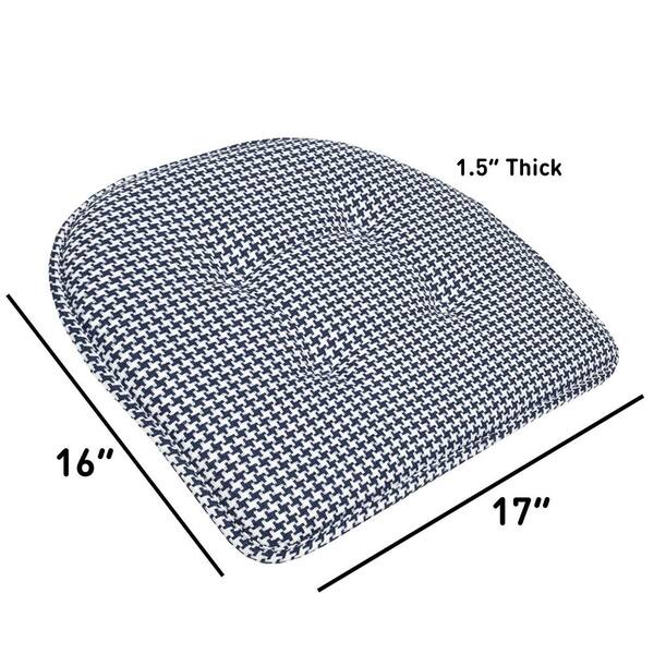 Navy, Houndstooth Stitch Memory Foam U-Shaped 16 in. x 16 in. Non-Slip Indoor/Outdoor Chair Seat Cushion (2-Pack)