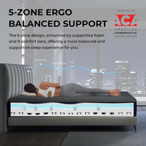 • Gel memory foam gently cradles you, providing pressure relief.