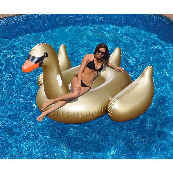 75 in. Giant Inflatable Ride-On Golden Swan Swimming Pool Float (3-Pack)