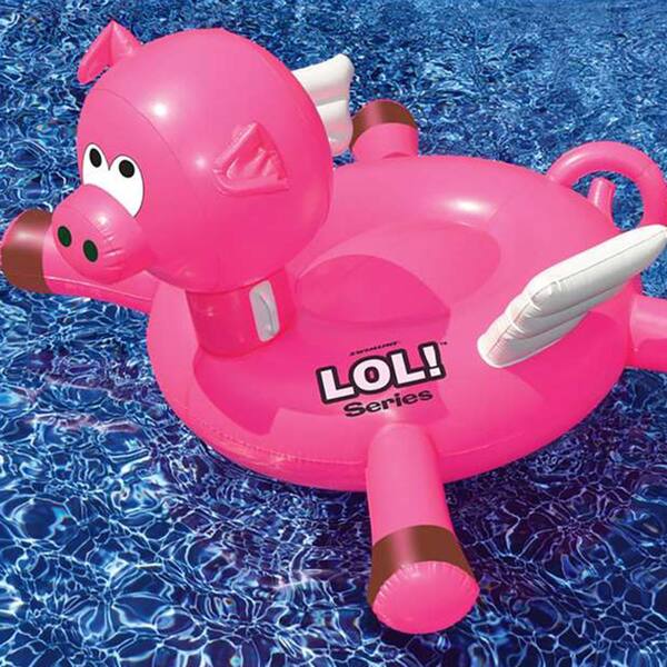 Pink Round Vinyl LOL! Inflatable Ride-On Flying Pig Swimming Pool Float (2-Pack)