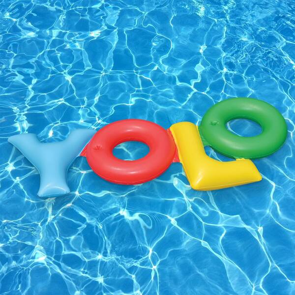 Red Vinyl Round Inflatable YOLO Swimming Pool Backyard Fun Raft Float Toy Tube (2-Pack)