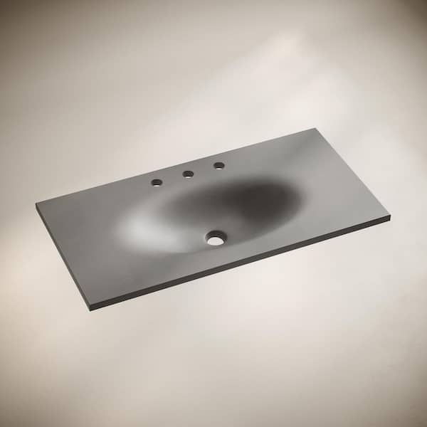 36 in. W x 18.5 in. D 3-Hole Widespread Concrete Vanity Top Sink in Matte Dark Gray