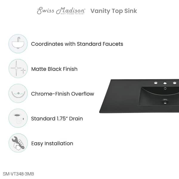 48 in. W x 5.5 in. D Ceramic Vanity Top in Matte Black with 3 Holes