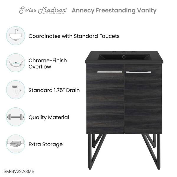 Annecy 24 in. Bathroom Vanity in Black Walnut with Black, 3-Hole Ceramic Sink Top