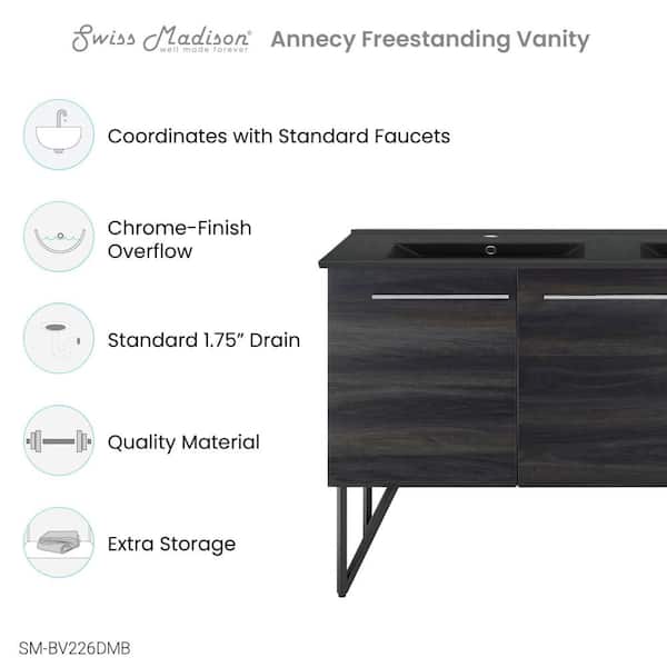 Annecy 60 in. W Black Walnut, Double Basin Bathroom Vanity With Black Artificial Stone Sink Top
