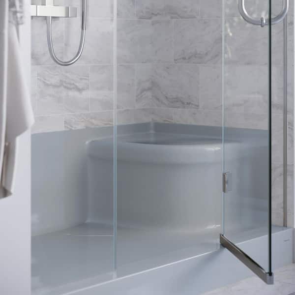 Aquatique 60 in. L x 32 in. W Single Alcove Shower Base Pan with Left Hand Drain and Integral Right Hand Seat in Gray